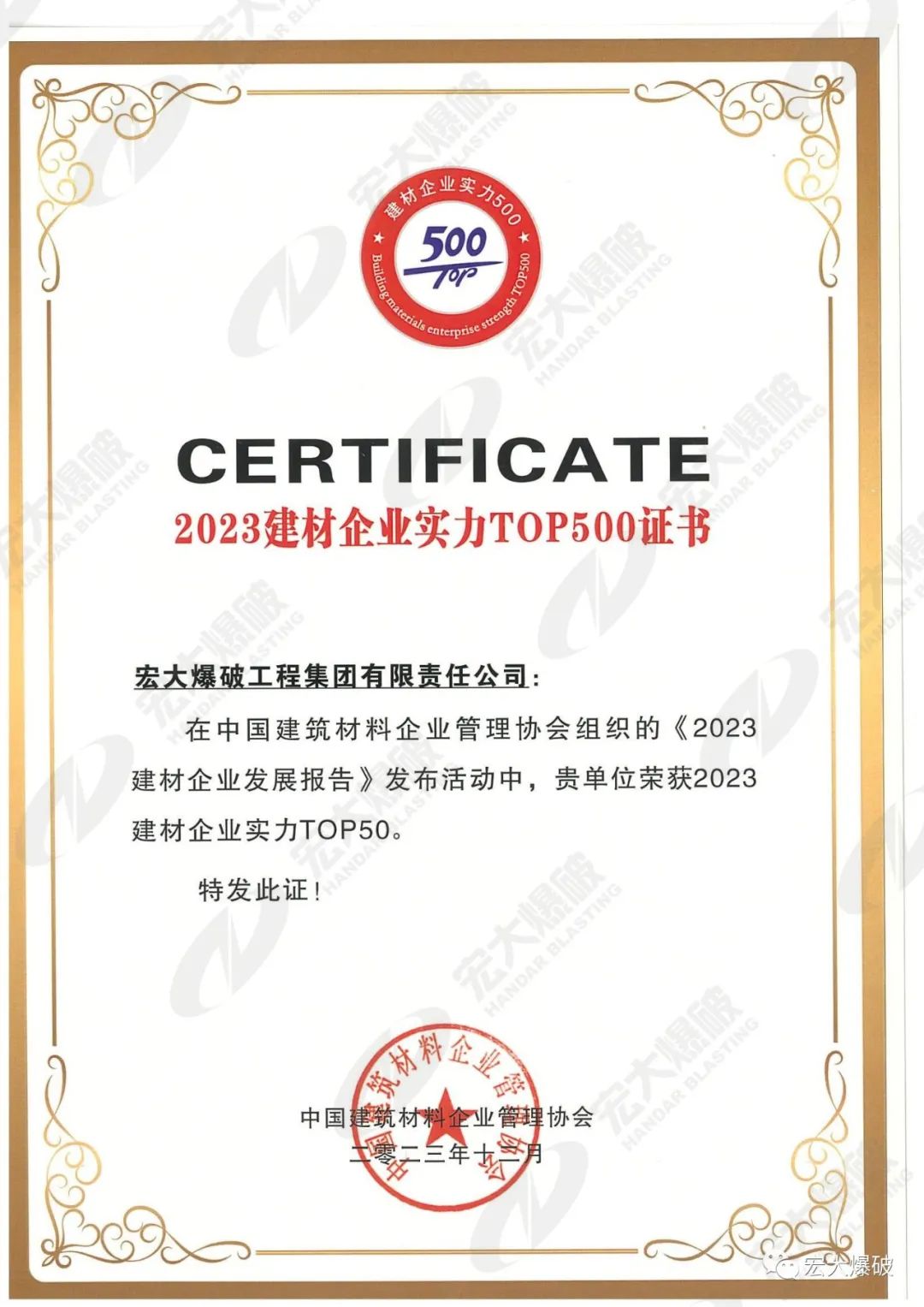 12月14日,由中国修建质料企业管理协会主理的2023中国建材企业生长论坛在武汉召开。广东bwin必赢国际下属bwin必赢国际爆破工程集团有限责任公司(以下简称“bwin必赢国际爆破”)应邀出席并获2023中国建材企业实力50强。这也是bwin必赢国际爆破一连五年位列中国建材企业年度100强。